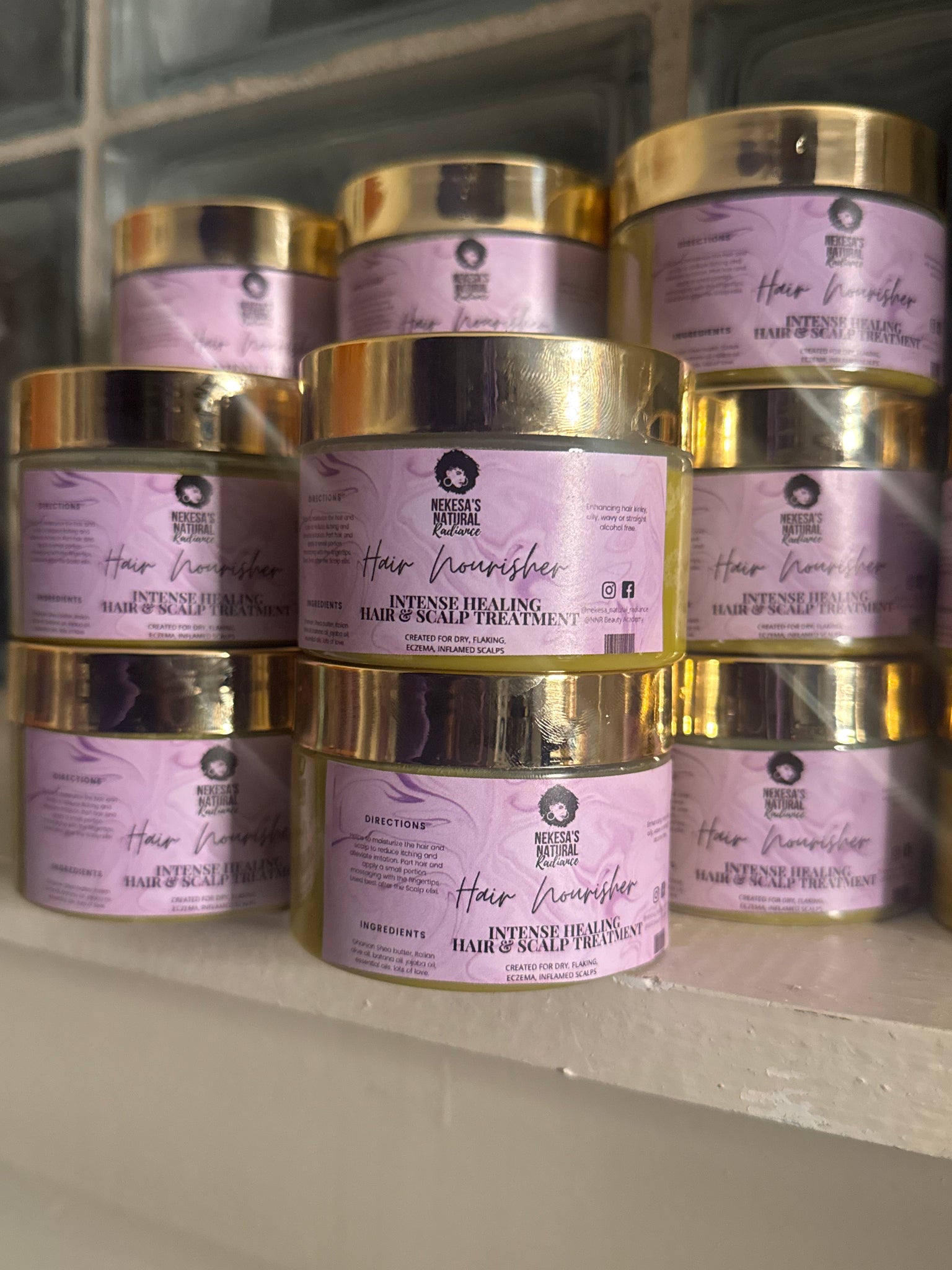 NNR Hair Nourisher is a targeted scalp treatment formulated to stimulate the scalp and support healthy hair growth. Botanical actives including sage, nettle, horsetail, rosemary, and goji berry help promote circulation and strengthen the hair fiber. Batana oil, Ghanaian shea butter, and Italian olive oil provide emollient conditioning to maintain moisture, scalp comfort, and hair integrity.
